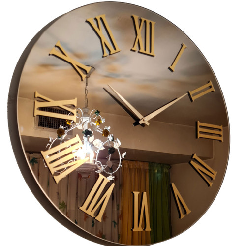 ساعت دیواری آینه ای نگین دار گرد سه تیکه مدل لوکس بسیار زیبا و جذاب در سه رنگ مختلف نقره ای و برنز و طلایی قطر 60 سانت