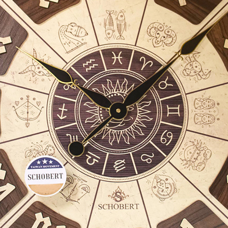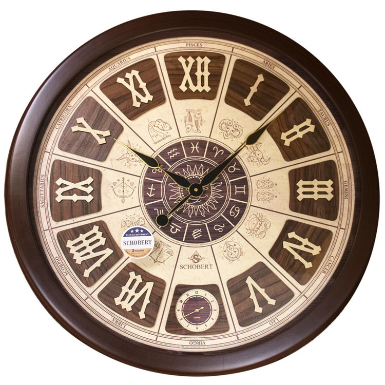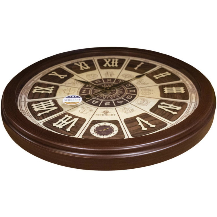 این ساعت ساخت شرکت شوبرت میباشد. بدنه ساعت تهیه شده از چوب با کیفیت همراه با 2 موتور روانگرد بدون صدا و مصرف کم باتری میباشد. طراحی زیبای وسط ساعت همراه با اعداد برجسته رومی و همچنین به دلیل اختلاف رنگ بین صفحه ساعت و رنگ عقربه ها این ساعت را بسیار زیبا و خوانا کرده است