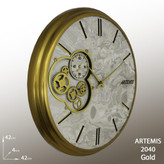 ساعت دیواری فلزی و آبکاری شده سایز 40، دارای چرخ دنده های فعال روی صفحه ساعت