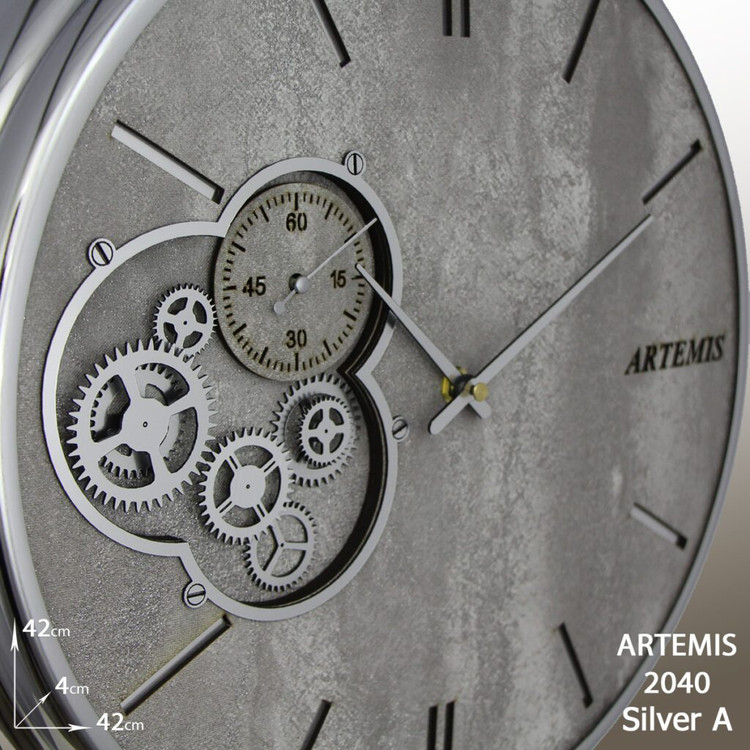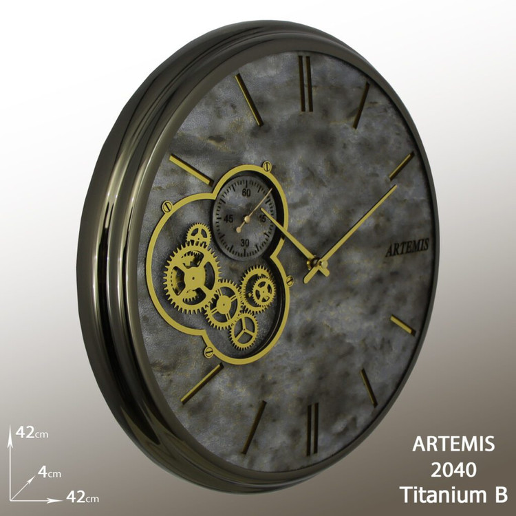 ساعت دیواری آرتمیس مدل 2040 تولید شده از فلز آبکاری شده و دارای ثبات رنگ و کیفیت بالا میباشد . این محصول در سهرنگ طلایی و نقره ای و دودی تیتانیوم در سایت تولیدی ساعت رضایی موجود میباشد .