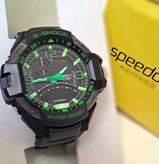 خرید ساعت مچی کاسیو اسپیدو مدل S-SHOCK دو زمانه در رنگ های متنوع و زیبا مناسب برای آقایان و خانم ها یکی از ساعت های اسپورت کمپانی اسپیدو که به صورت مستقیم و با قیمت عالی می توانید از سایت ما خریداری نمایید . ساعت مچی S-SHOCK دارای جعبه بوده و همچنین بدنه ای ساعت تولید شده از پلاستیک تقویت شده است که مقاومت بسیار بالایی در برابر ضربه دارد. اگر شغلی پرتحرک دارد ، اگر در هنگام ورزش کردن نیاز به ساعت کرنومتر دار دارید خرید ساعت مچی S-Shock را به شما پیشنهاد می کنیم چرا که قدرت بالا و دوام بسیار زیاد این ساعت برای سال های سال به هنگام ورزش کردن و فعالیت های بالا با شما همراه خواهد بود.